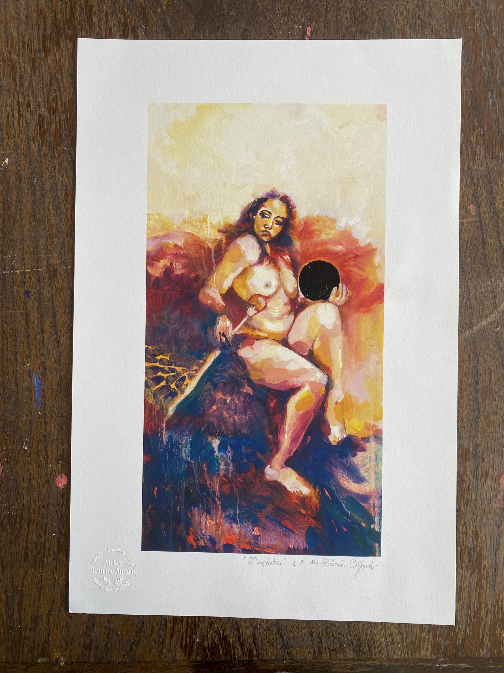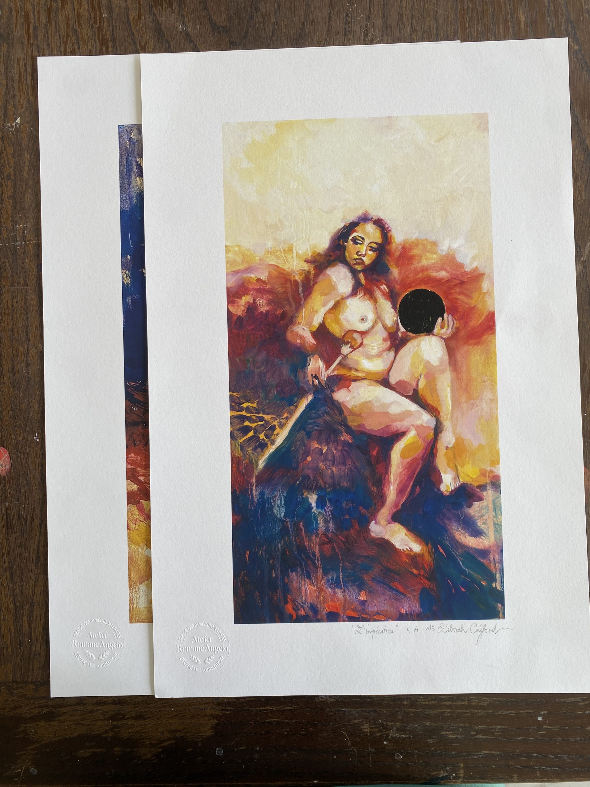 Issu des œuvres originales de Déborah Calfond, développées autour du tarot et de la série Originelles, ce tirage d’art en est une extension fidèle, pensée pour traverser le temps.
