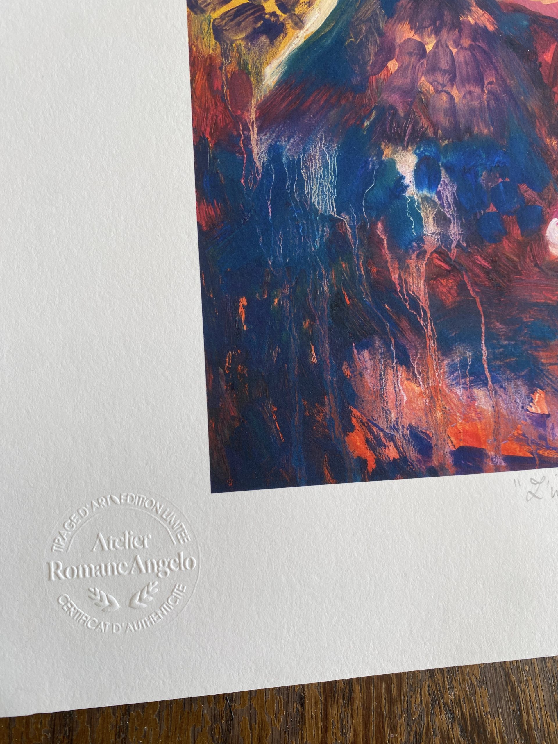 Imprimé sur papier Hahnemühle Rag 308, reconnu pour sa qualité muséale, chaque tirage restitue avec précision la matière, les nuances et la profondeur de la peinture.